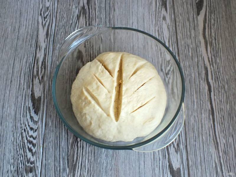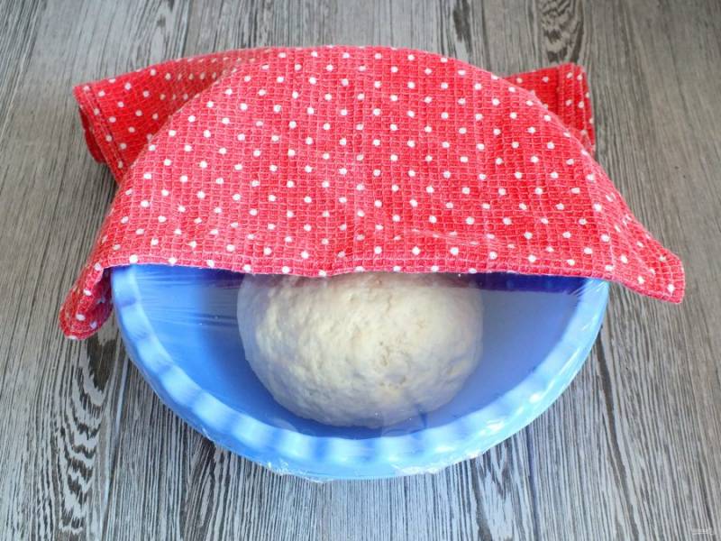 Чашу затяните пищевой пленкой, накройте полотенцем и оставьте при комнатной температуре на 30 минут.