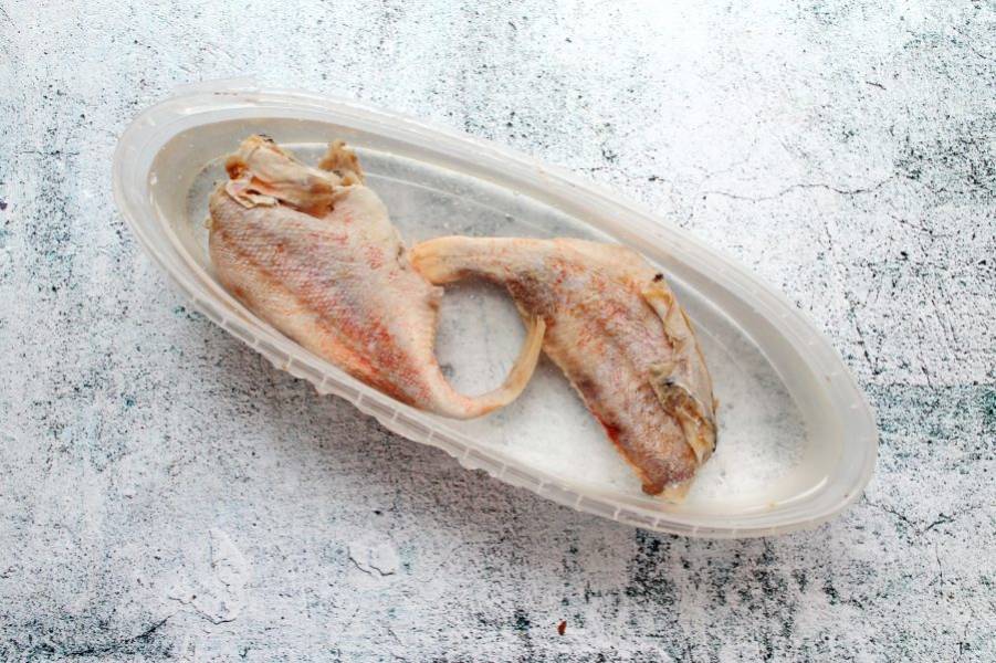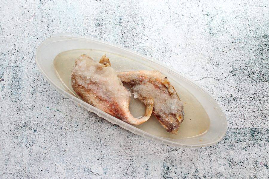 Смойте с рыбы соль и замочите в холодной воде на 2 часа. После этого обсушите рыбу и подавайте.