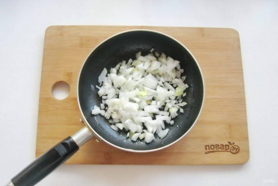 Репчатый лук очистите, помойте и мелко нарежьте. Выложите в сковороду.