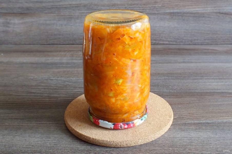 Закрутите, переверните на крышку. Укройте пледом и в таком виде охладите.