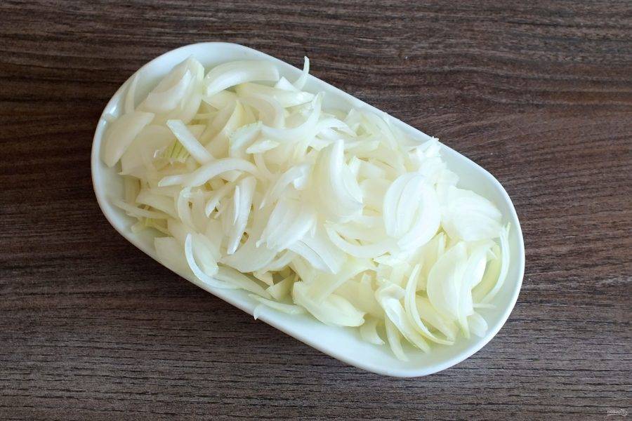 В кастрюле с толстым дном или жаровне разогрейте растительное масло. Опустите в него лук и обжаривайте в течение 7 минут на умеренном огне.