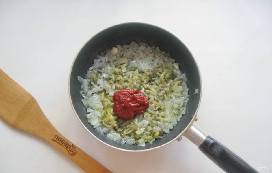 Добавьте томатную пасту и перемешайте.