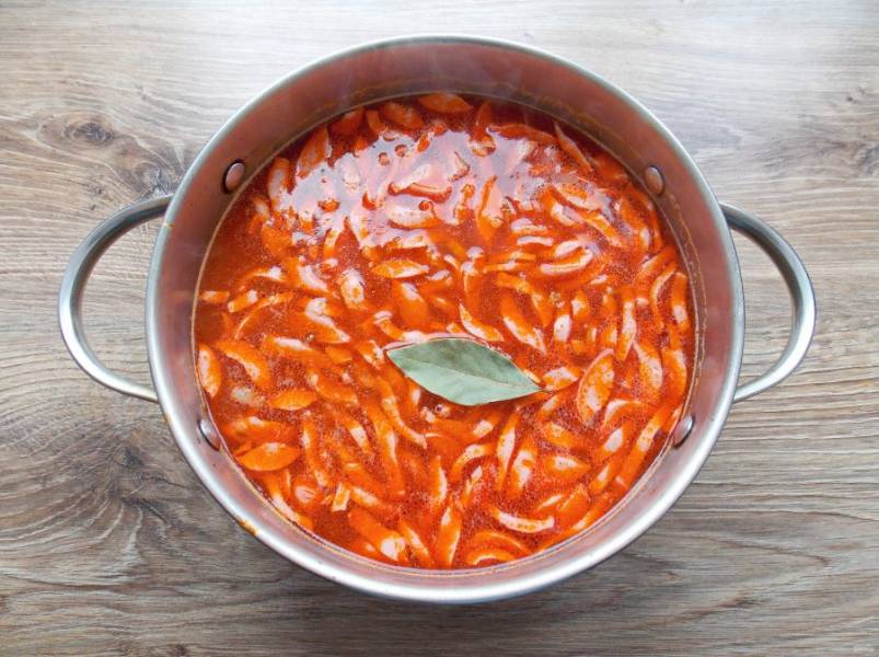 Порежьте свинину и сердце соломкой, выложите обратно в бульон.