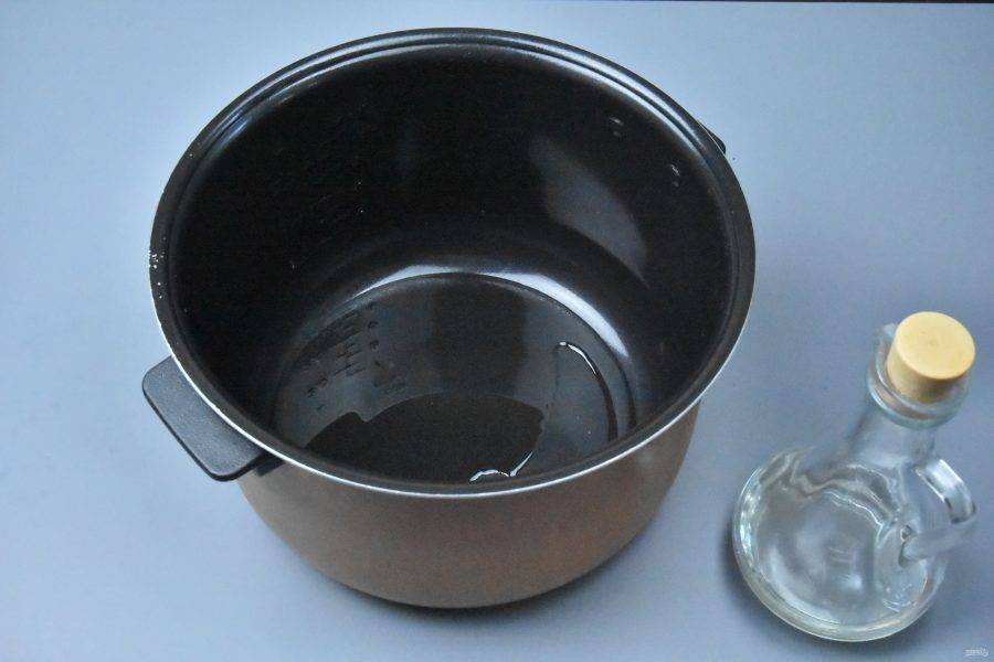 Для приготовления солянки используйте мультиварку позволяющую сэкономить время и облегчить процесс приготовления. Для закладки продуктов извлеките из устройства емкость. Влейте на дно растительное масло.