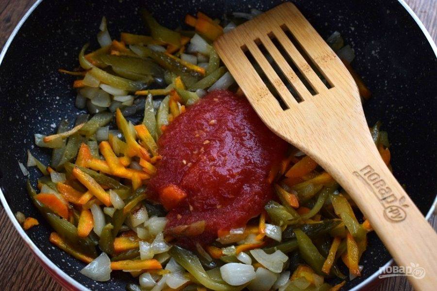 Добавьте томатный сок, перемешайте, тушите в течение 5 минут.