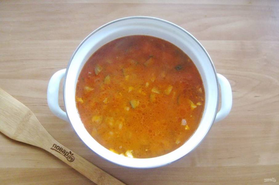 Накройте кастрюлю крышкой и варите суп на небольшом огне 7-10 минут.