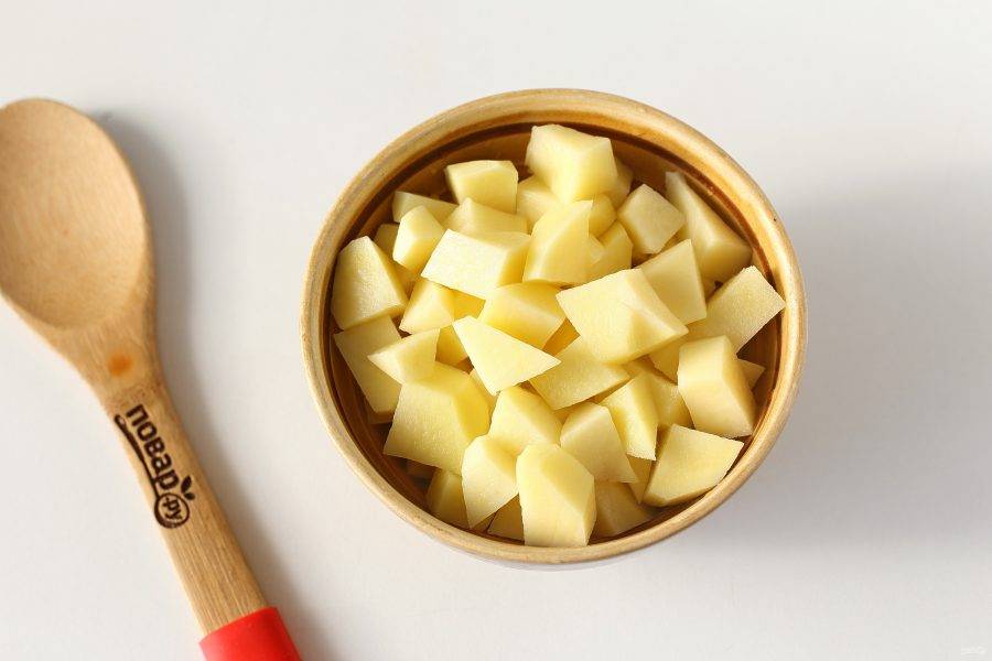 Добавьте в кастрюлю содержимое сковороды и картофель. Доведите все до кипения и варите на небольшом огне, прикрыв крышкой, до готовности картофеля.