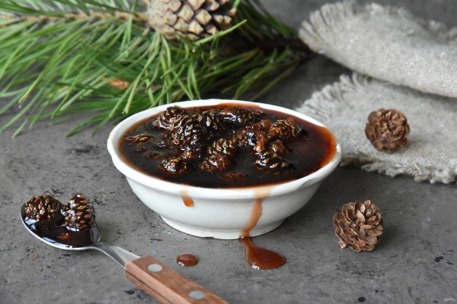 Варенье из сосновых шишек еще называют сосновым медом и используют в народной медицине из-за его многочисленных полезных свойств.