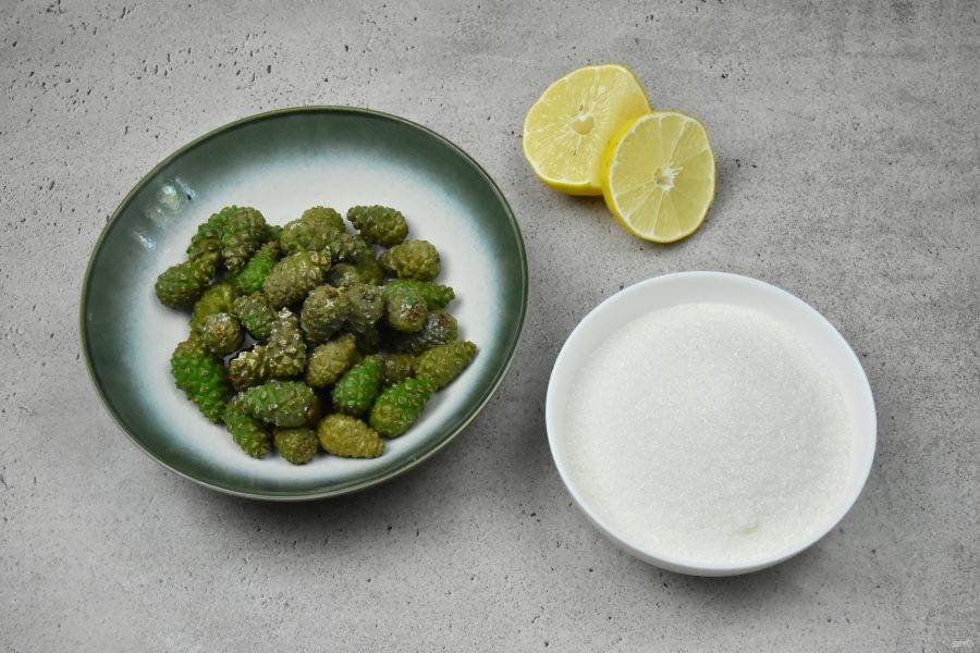 В первую очередь для варки варенья подготовьте шишки или молодые побеги сосны. Они должны быть собраны в период весны, с мая по июнь. Вдали от дорог, города, предприятий, с молодых деревьев и размер шишек не должен превышать 3 сантиметров.