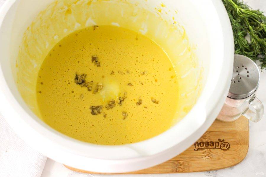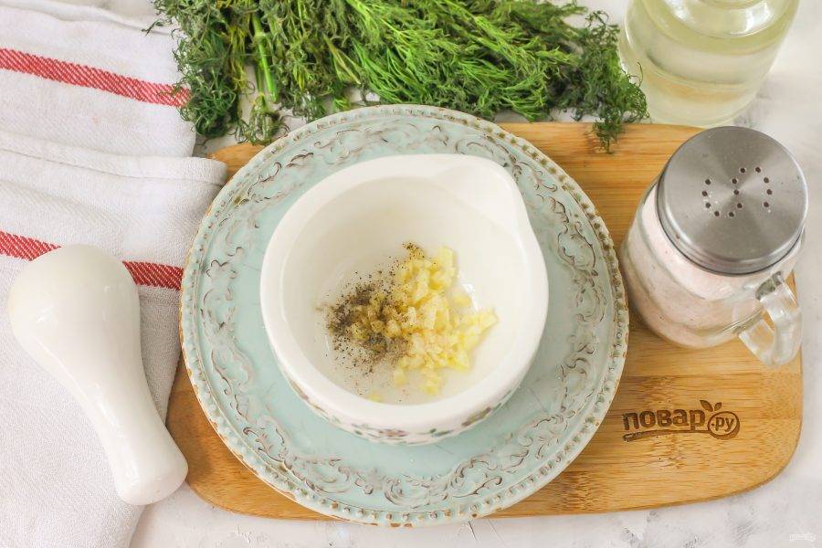 Тщательно перемешайте и оставьте на 10-15 минут, чтобы соус пропитался чесночным ароматом.