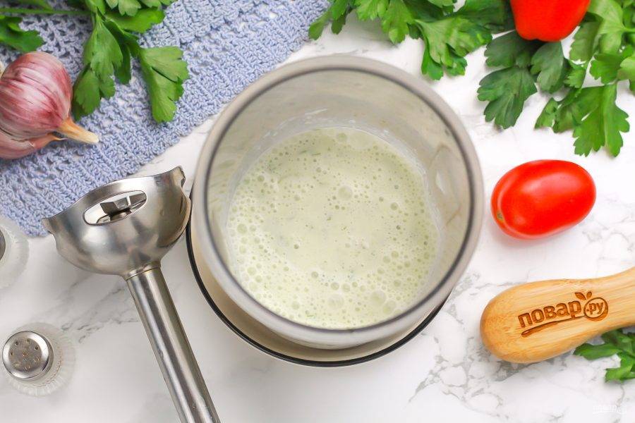 Пробейте блендером все содержимое емкости в течение 2-3 минут.