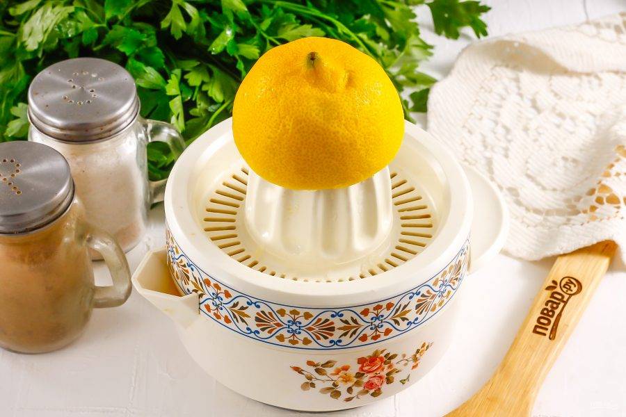 Разрежьте лимон пополам, и из одной половины фрукта выжмите сок. Большего количества сока не нужно, так как соус может получиться очень кислым на вкус. Допустимо заменить свежевыжатый сок концентрированным, но в меньшем количестве.