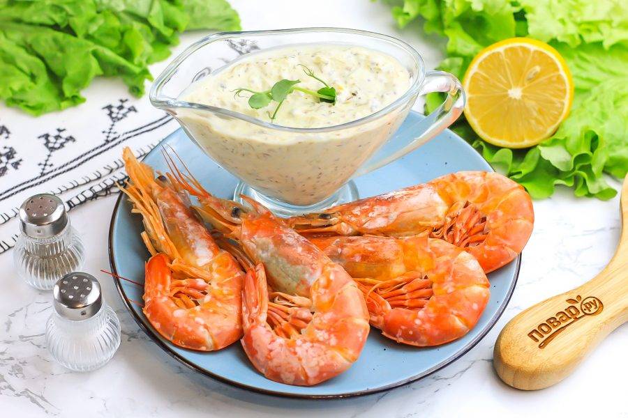 Подайте сочные и красочные креветки с ароматным соусом — от этого вкус блюда только выиграет! Готовится соус за считанные минуты из подручных продуктов, но лучше всего его охладить перед подачей.