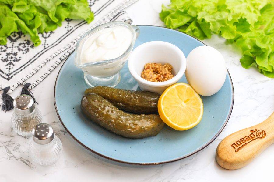 Подготовьте указанные ингредиенты. Заранее отварите куриное яйцо в течение 12 минут и остудите в холодной воде.
