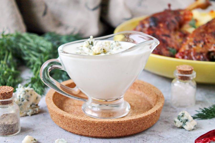 Голубой сыр раскрошите в кастрюлю и варите на медленном огне до его растворения. Соус посолите, поперчите по вкусу и снимите с огня. Перелейте соус в соусник и подавайте на стол.