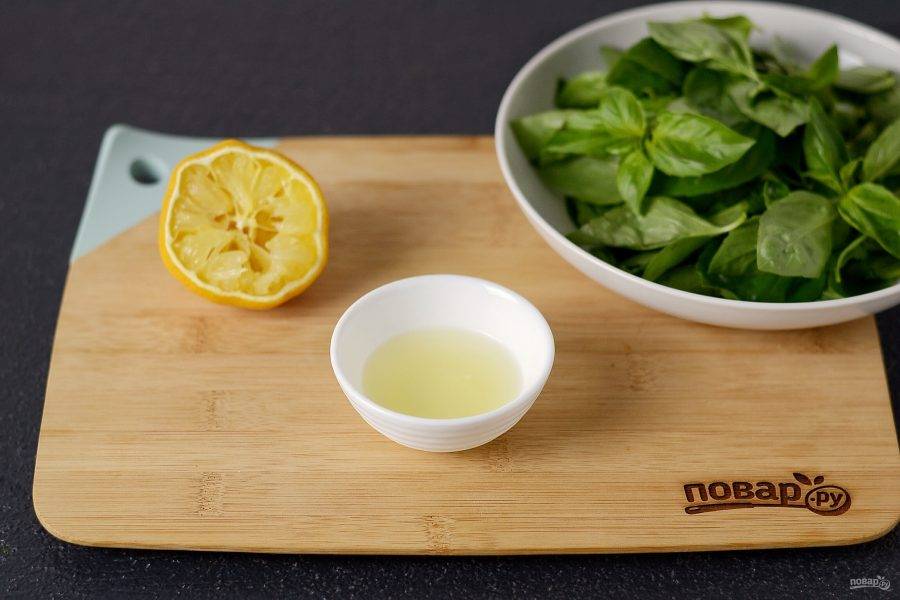 Базилик помойте и обсушите. Отделите листья от стеблей.