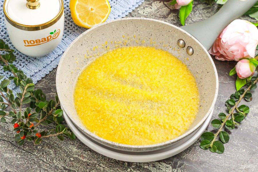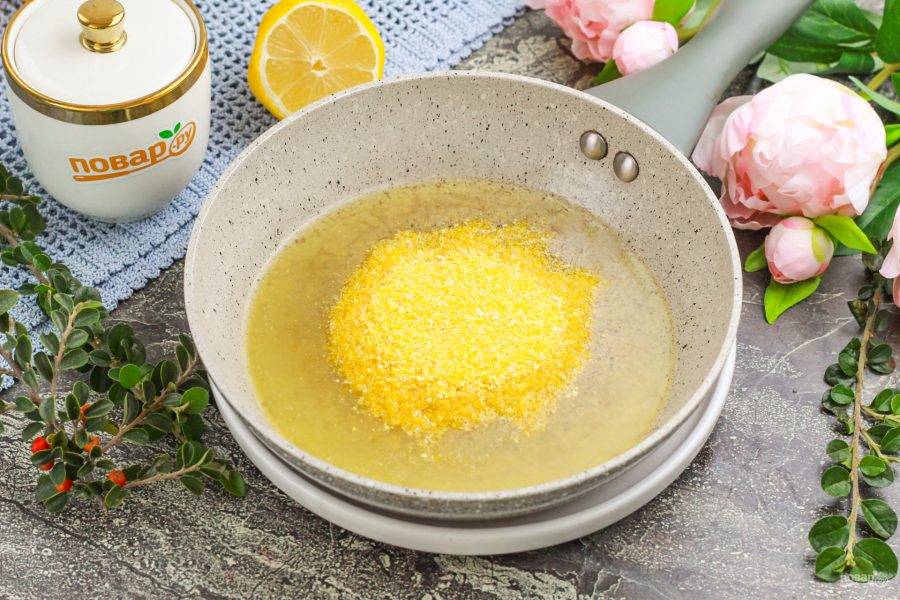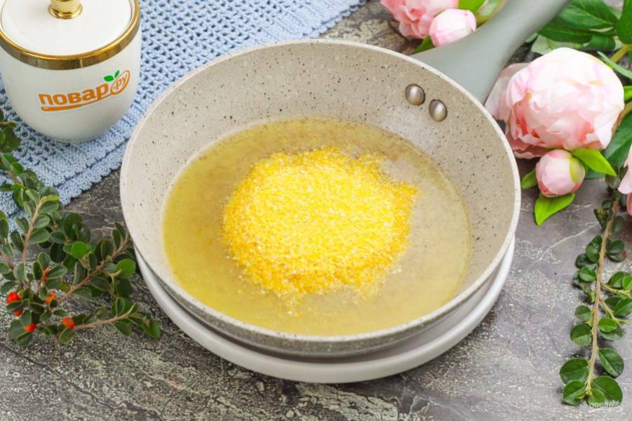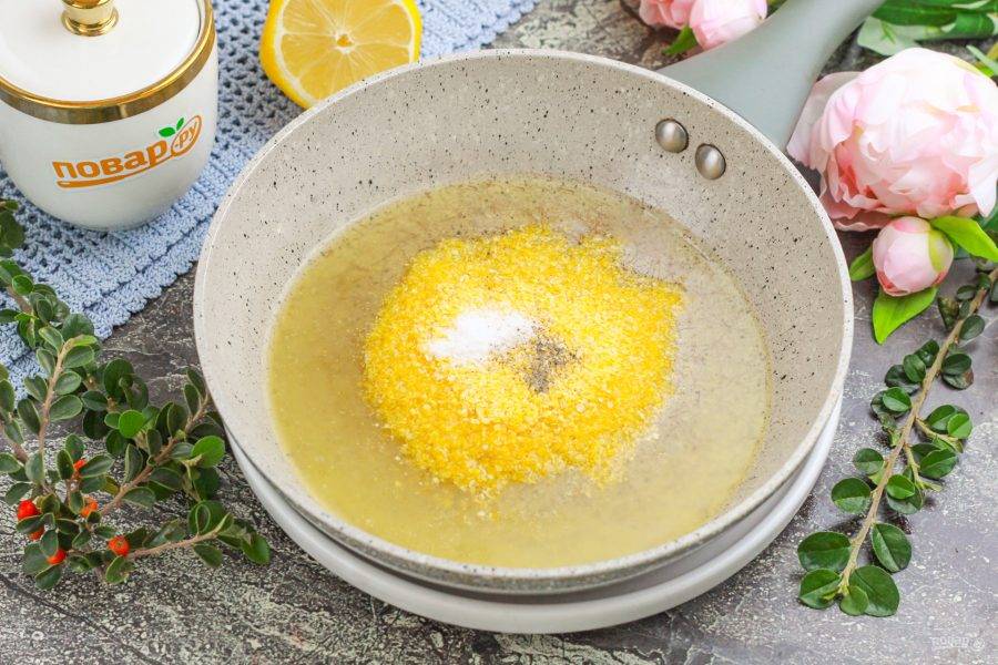 Растопите сливочное масло на сковороде и прокалите его примерно 6-10 минут, чтобы выпарилась лишняя жидкость. Всыпьте панировочные сухари и обжарьте их в масле до легкой румяности 2-3 минуты.