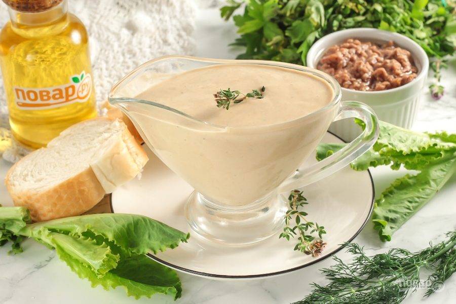 Выложите в соусник приготовленный соус и охладите. Подайте к столу с хлебной нарезкой, салатом и т.д.