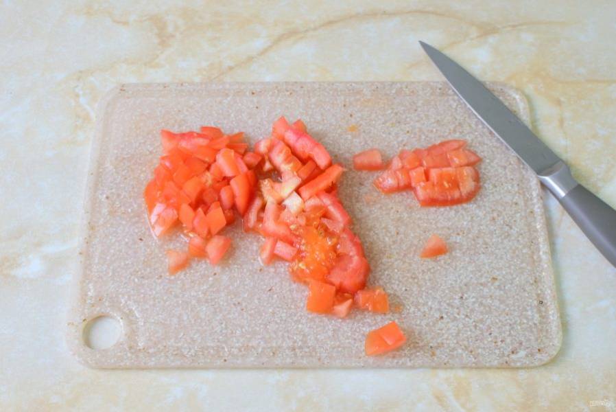 Помидор нарежьте мелким кубиком.