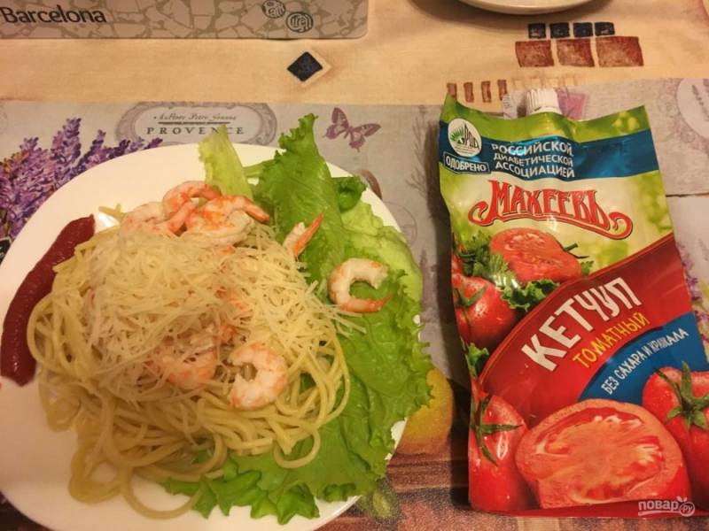 Спагетти с креветками готовятся быстро. Блюдо получается нежным и вкусным. #Махеевъ_чудеса_за_полчаса