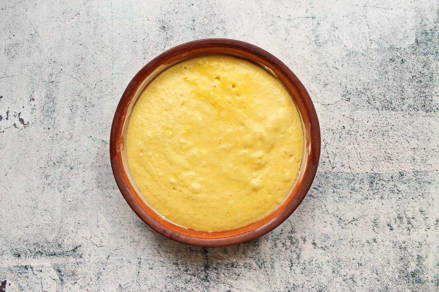 Высокую форму для запекания смажьте сливочным маслом и вылейте яичную массу.