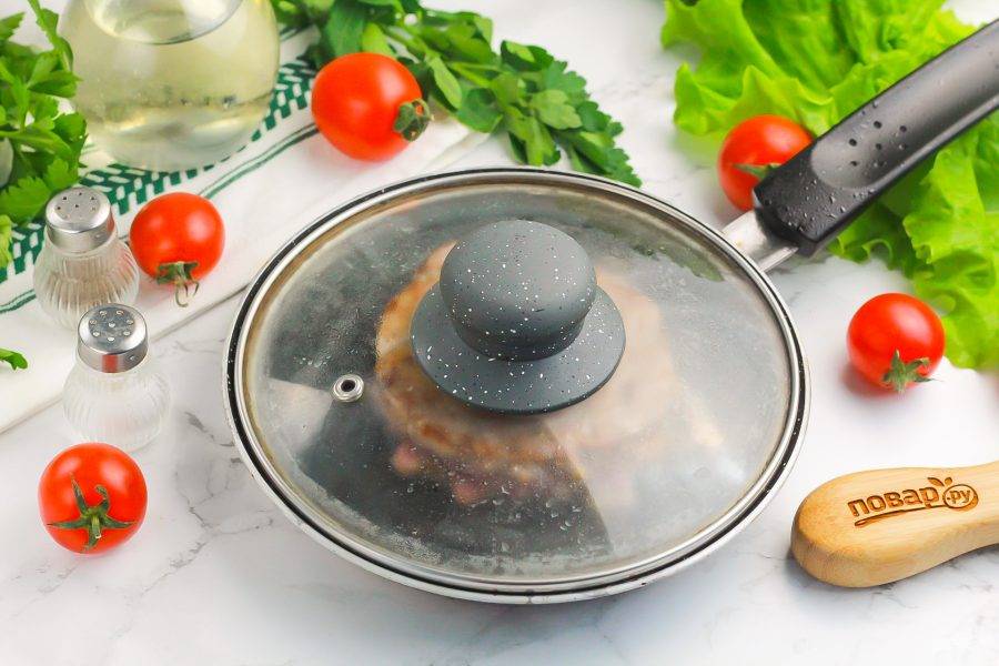 Затем убавьте нагрев до умеренного и накройте емкость крышкой. Пропарьте стейк еще 1-2 минуты.