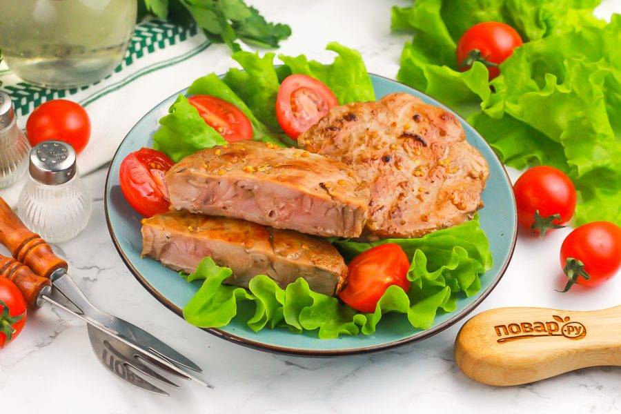 Невероятно вкусный стейк из тунца заставит вас забыть обо всем на свете. Подавайте его со свежими овощами, зеленью, соусами. Чтобы он получился более сочным, промаринуйте стейк в соевом соусе!