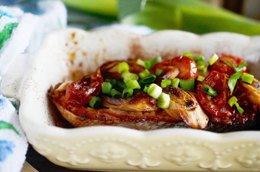 Лосось — очень благородная и вкусная рыбка! Предлагаю приготовить стейк из лосося в пряном маринаде, который прекрасно оттенит вкус этой рыбы, и дополнить луком-пореем и черри! Вкусно и пикантно!