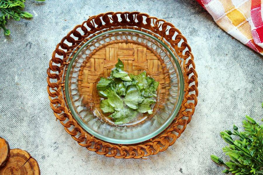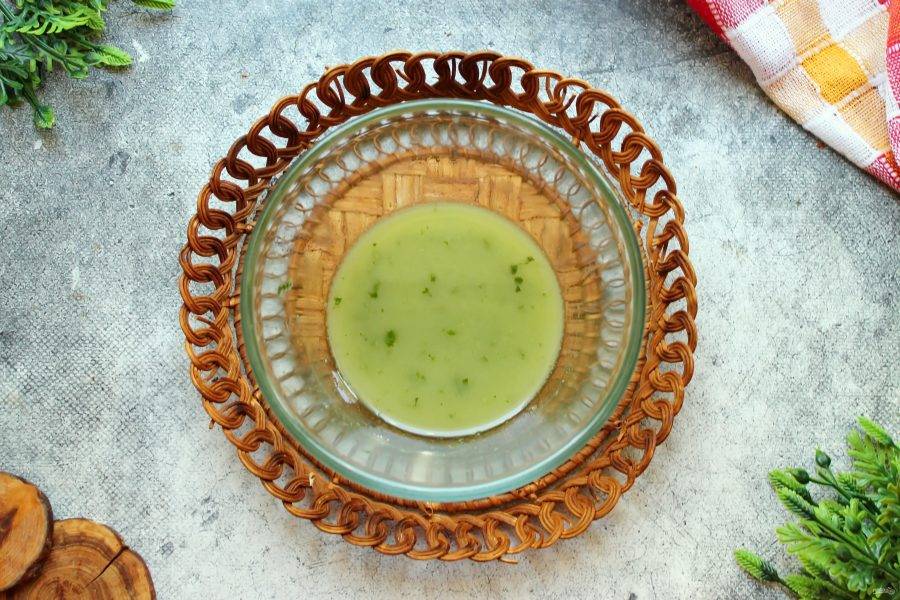 К базилику влейте растительное масло и пробейте блендером до однородности.