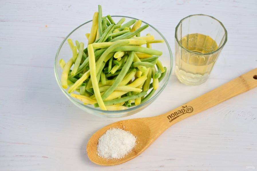 1. Стручковую фасоль промойте, обрежьте кончики, разрежьте пополам, если стручки длинные.