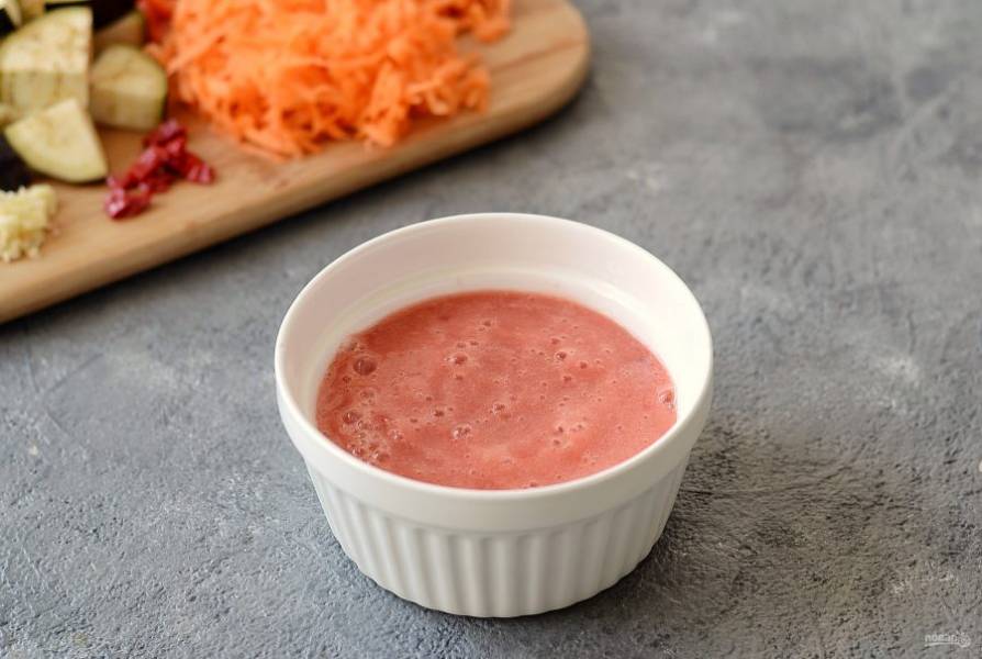 Морковь натрите на крупной терке, болгарский перец нарежьте соломкой. Баклажаны нарежьте крупными ломтиками. Чеснок пропустите через пресс.