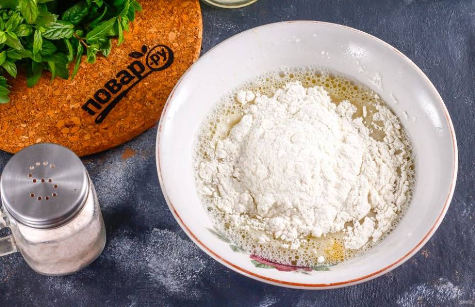 Всыпьте пшеничную муку и замесите тесто. По желанию можно добавить 0,25 ч.л. разрыхлителя и немного ванильного сахара.