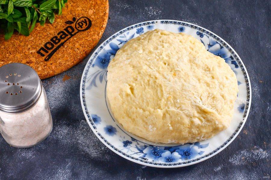 Сформируйте колобок теста и накройте его пищевой пленкой. Оставьте на 15 минут для активации клейковины.