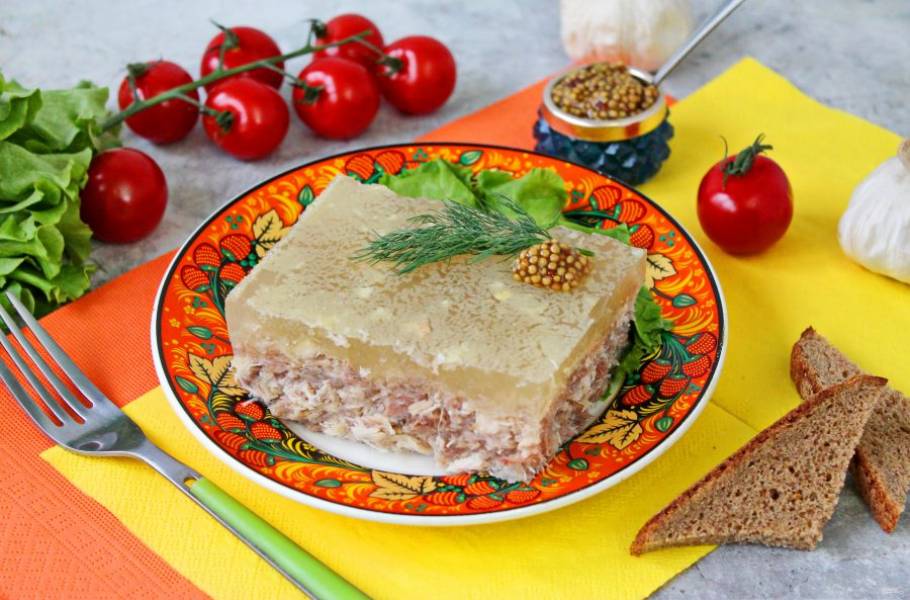 Студень готов. Разрежьте его порционно и подавайте на стол. Приятного аппетита!