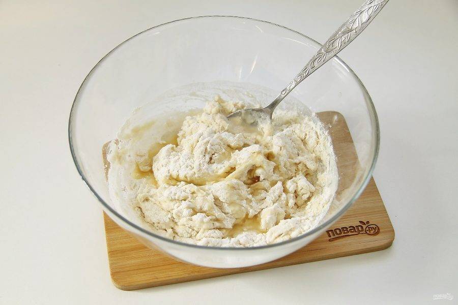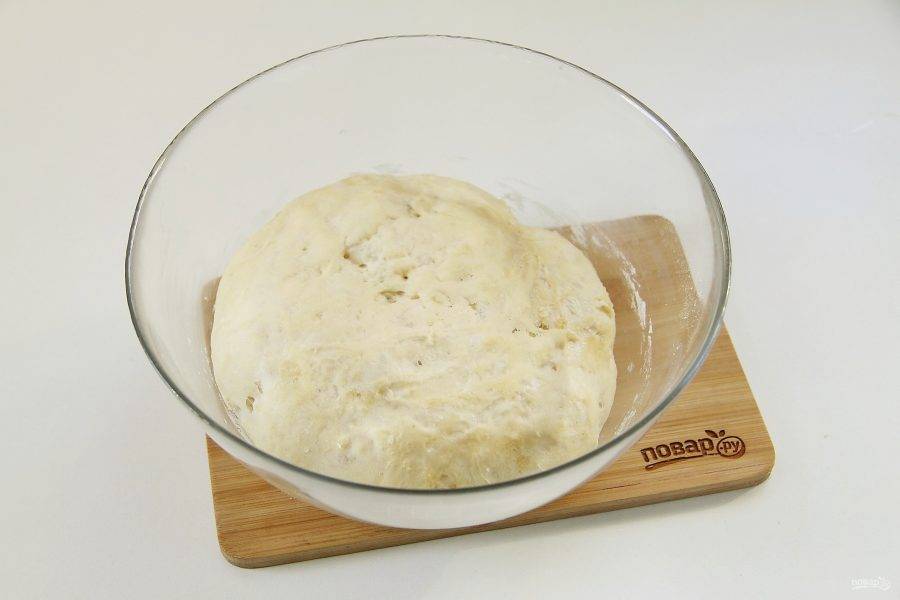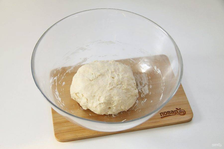 Затем руками замесите мягкое, чуть липкое тесто. Соберите его в шар, накройте полотенцем и поставьте в теплое место для подъема.