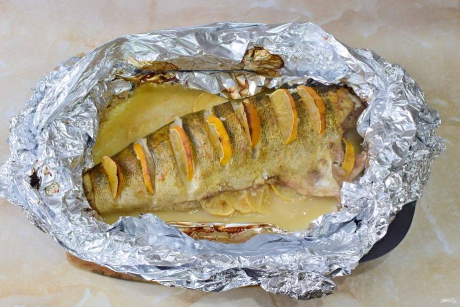 Минут за 10 до окончания запекания откройте фольгу, чтобы рыба немного подрумянилась. Готовую рыбу извлеките из духовки, немного остудите и подавайте к столу.