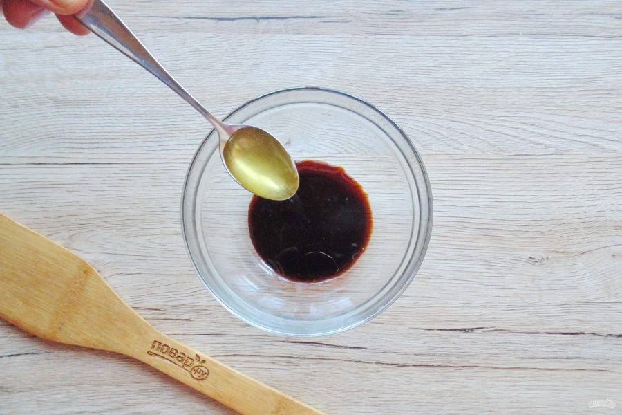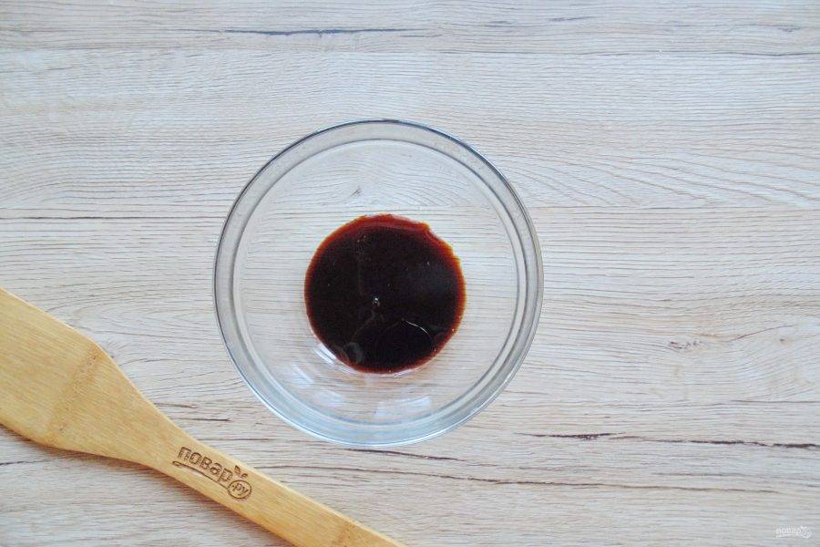 Приготовьте маринад. В мисочку налейте соевый соус.