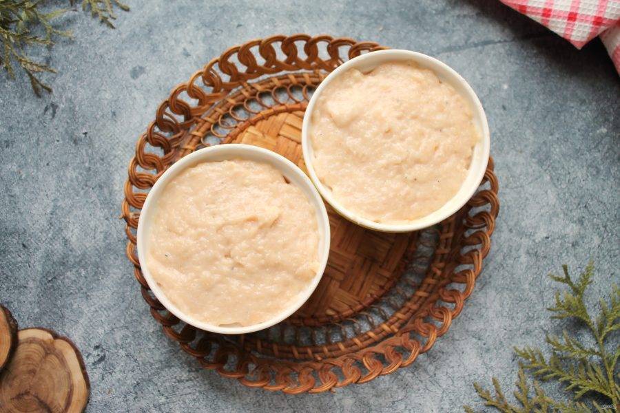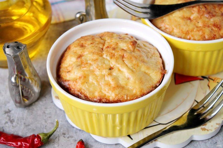 Поставьте формочки с суфле из кролика в разогретую духовку и готовьте при температуре 160 градусов в течение 35 минут, до готовности.