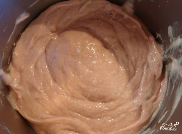 3. Образовавшуюся смесь продолжайте взбивать на небольшой скорости. Но недолго – до 2 минут.