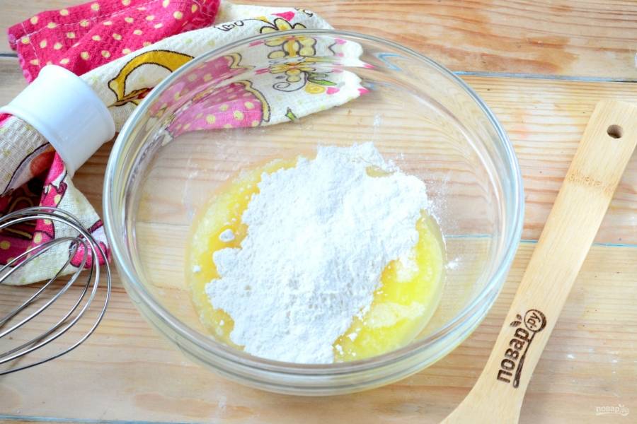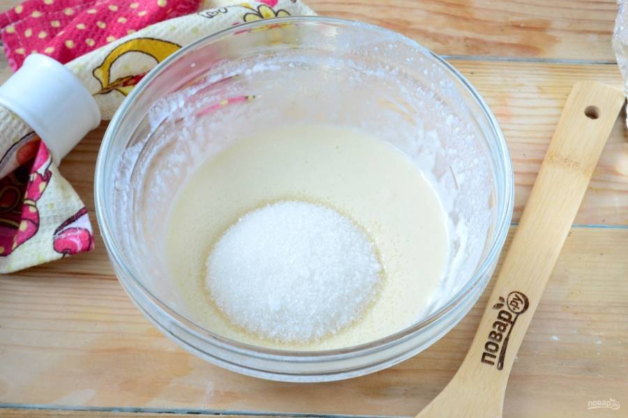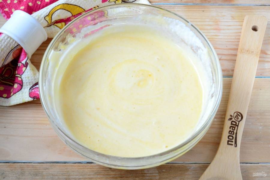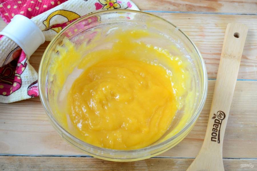Отделите желтки от белков. Желтки взбейте, чтобы они посветлели, и добавьте в молочную смесь, перемешайте.