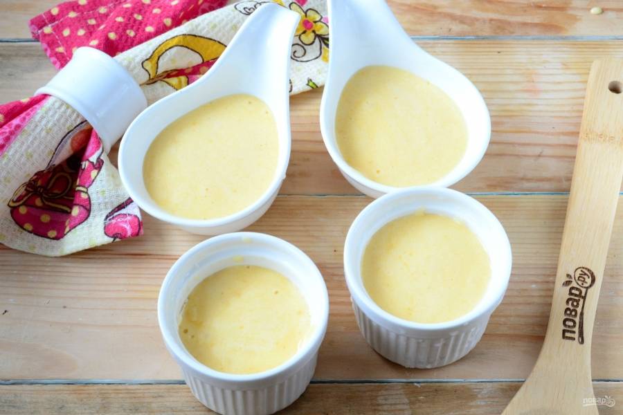 Переложите тесто для суфле в формочки и отправьте в заранее разогретую до 180 градусов духовку на 20 минут. Обратите внимание: заполняйте формочки примерно на 2/3 их объема, поскольку суфле увеличится в объеме достаточно сильно.