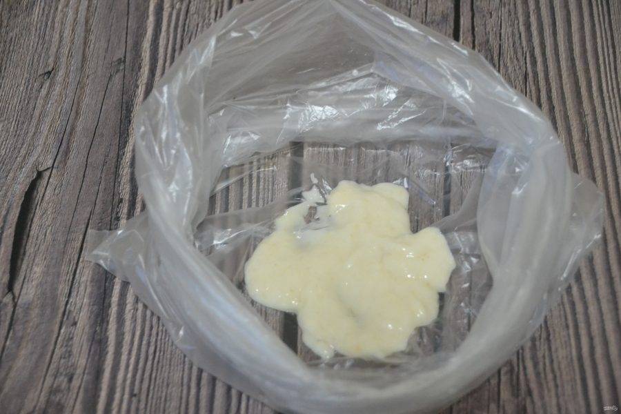 Выложите в полиэтиленовый пакет половину смеси с хреном.