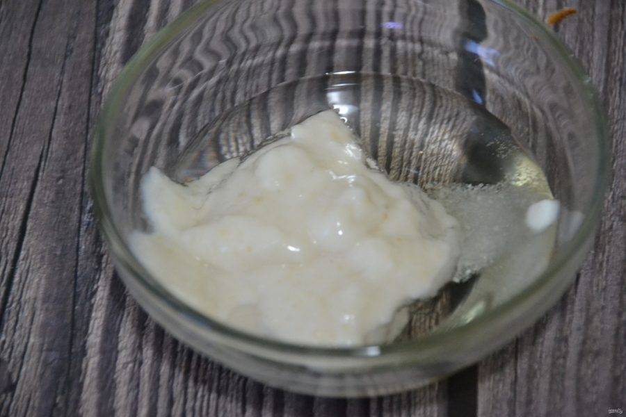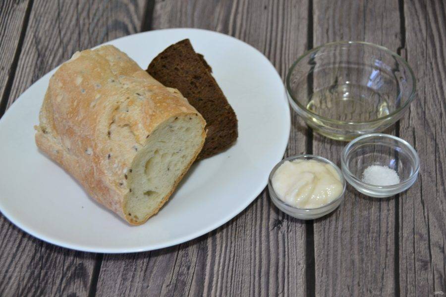 Пока запекаются сухарики, смешайте в миске хрен, растительное масло и соль.