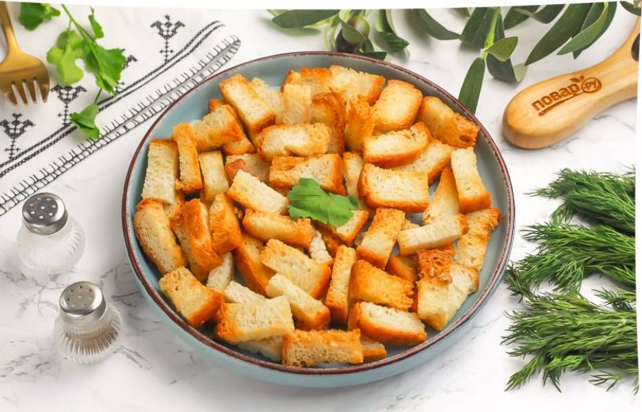Хрустящие, румяные и пряные сухарики можно с легкостью приготовить и в домашних условиях из обычного хлеба, не приобретая их в магазине. Подавайте их к борщу, супу, как самостоятельную закуску к пиву!