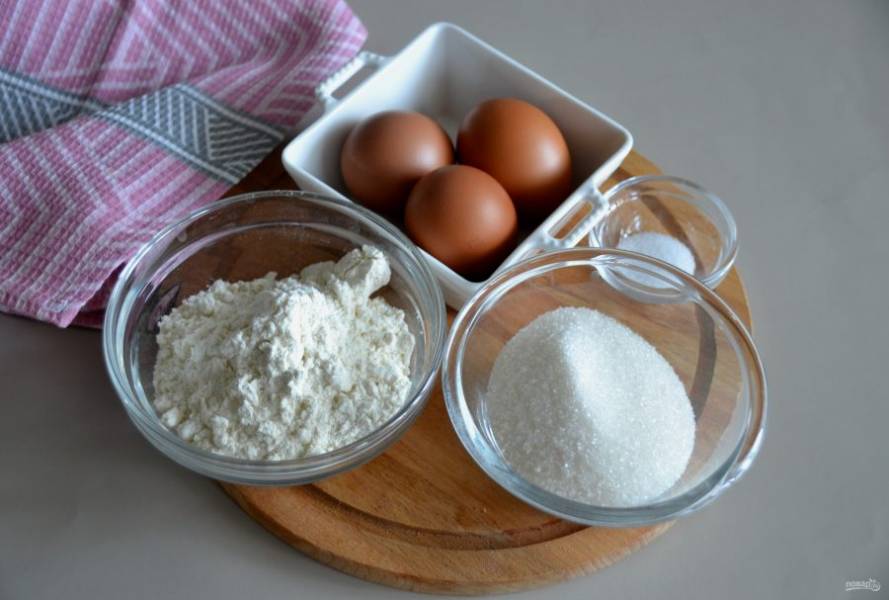 Подготовьте ингредиенты. Яйца для бисквита должны быть комнатной температуры. Сразу включите духовку на разогрев при температуре 160 градусов в режиме «верх-низ+ конвекция».