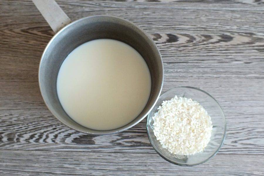 Сварите начинку. Доведите молоко до кипения. Всыпьте промытый рис. Варите на умеренном огне, помешивая, до готовности.