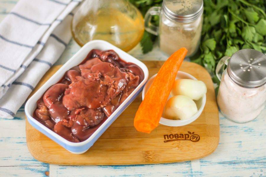 Куриную печень промойте в воде, срежьте жилы и пленки, выложите в кастрюлю. Залейте теплой водой и поместите емкость на плиту. Отварите субпродукт в течение 12-15 минут с момента закипания воды. Дольше варить не нужно, иначе печень станет жесткой на вкус.