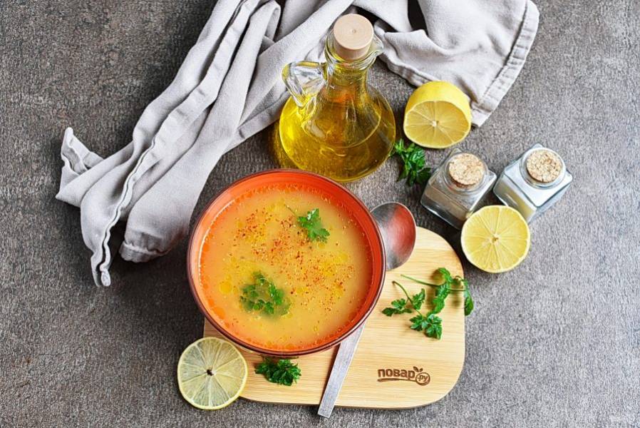 Вкусный суп из персидской чечевицы идеально подойдет на обед даже в дни Поста. В другие дни подавайте его со сметаной или чесночным майонезом. По желанию можно даже спрессовать зубчик чеснока в суп.