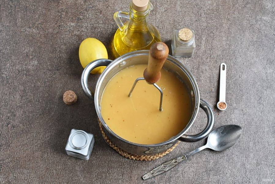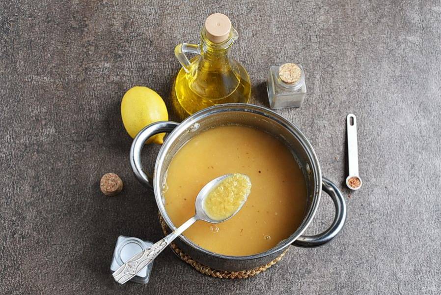 Варите до мягкости чечевицы, минут 20. Посолите по вкусу и добавьте немного черного перца.