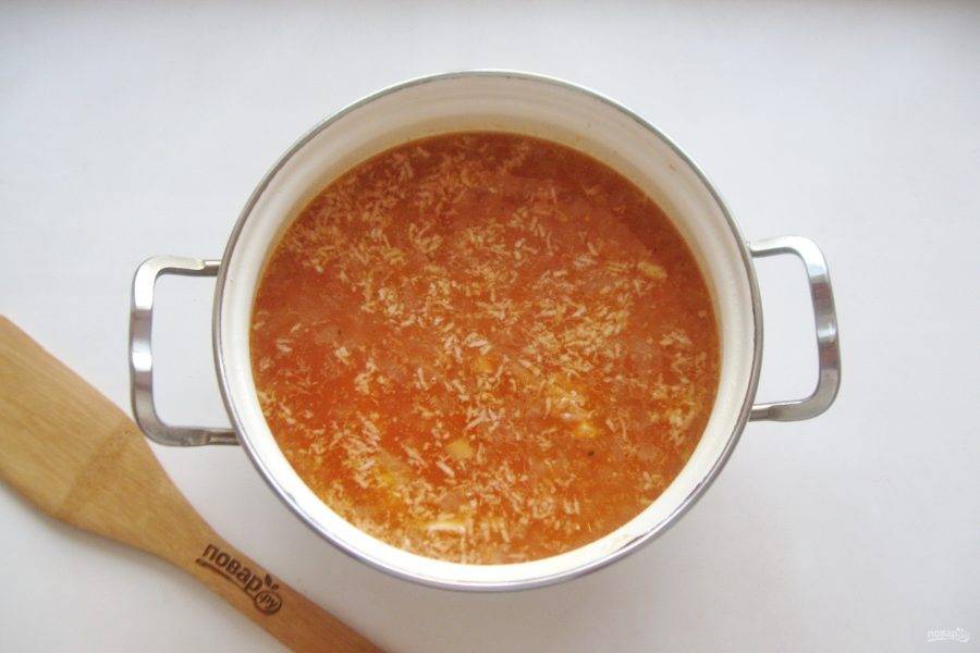 Через 10-15 минут добавьте в кастрюлю промытый рис.